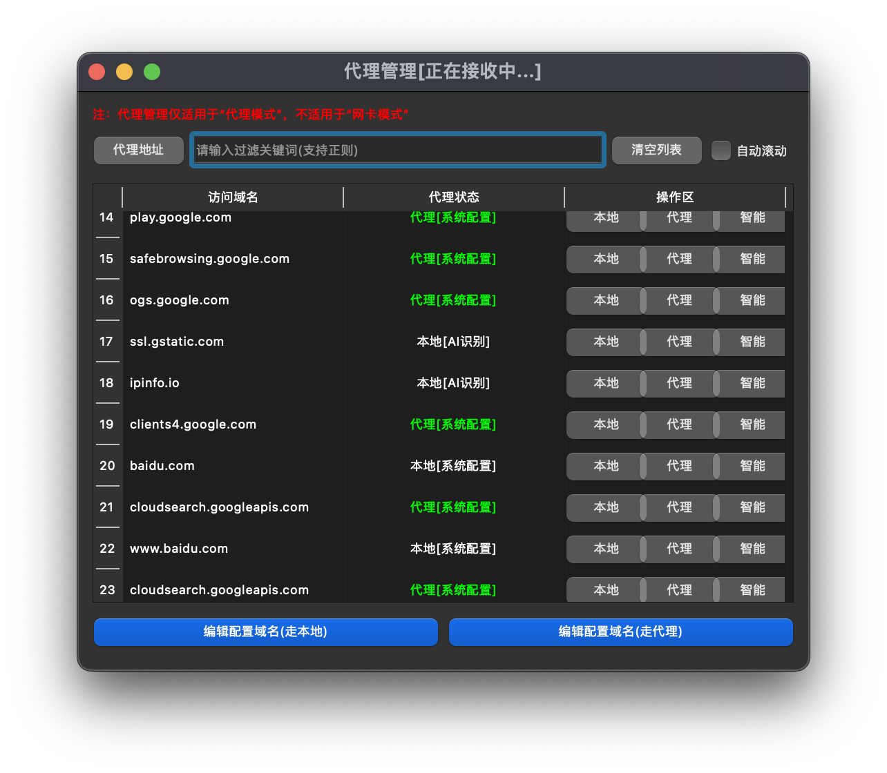 域名 默认智能AI代理 ,但也可以根据您的喜好,是否代理该域名